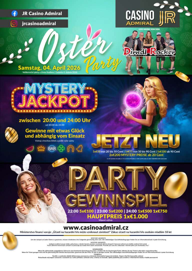 Casino ADMIRAL JR (former Blaues Casino) offers an elegant and stylish design. Let yourself be enchanted on two levels by a fascinating ambience, with great attention to detail, enchant and experience a casino like in a picture book. Play or try the latest and most exciting games on our 382 slot machines Good luck at one of our 12 live game tables. Here we offer all casino classics like Roulette, Blackjack, Ultimate Texas Holdem and Russian Poker. Take advantage of our large and cozy dining area during a break and let yourself be pampered. Less than an hour north of Vienna, Casino ADMIRAL JR is located directly at the border crossing Kleinhaugsdorf.