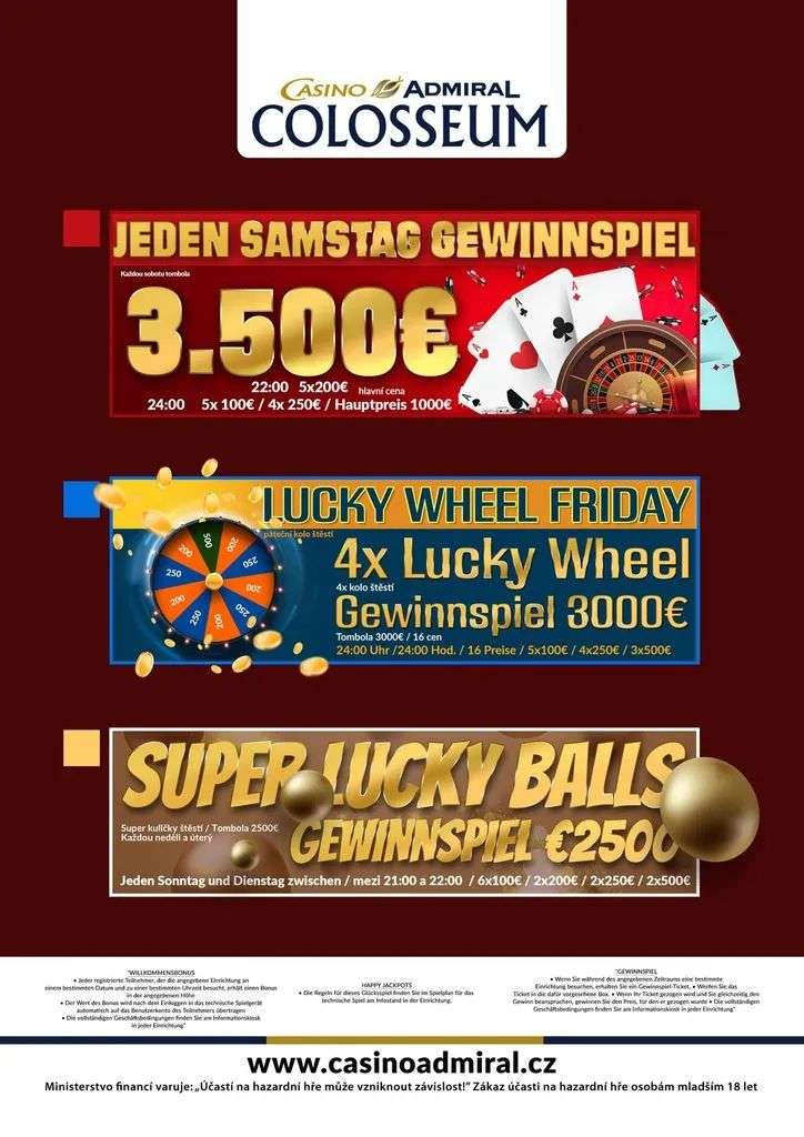 “Big, Bigger, Colosseum!” Let yourself be impressed by the Casino ADMIRAL Colosseum. Here the name really does not promise too much. This colossus among the Czech border casinos is by no means frightening. The Casino ADMIRAL Colosseum stands for a very special gaming experience. Spend exciting hours here and escape the daily grind in these breathtaking halls. 523 slot machines and 27 live game tables with the casino classics American Roulette, Blackjack, Ultimate Texas Holdem and Oasis Stud Poker, make the player’s heart beat faster. Less than an hour north of Vienna, the Casino ADMIRAL Colosseum is located directly at the border crossing Kleinhaugsdorf.