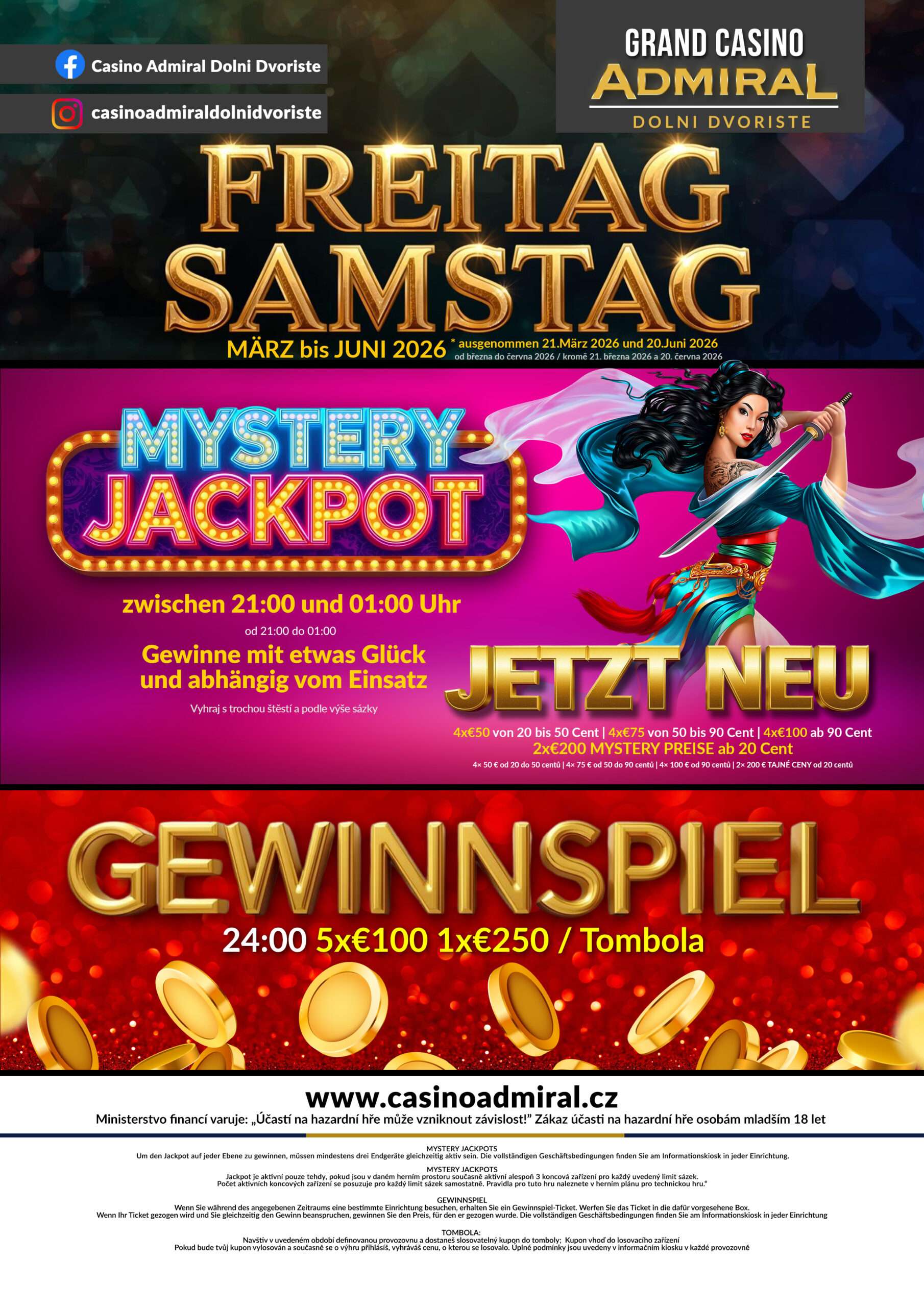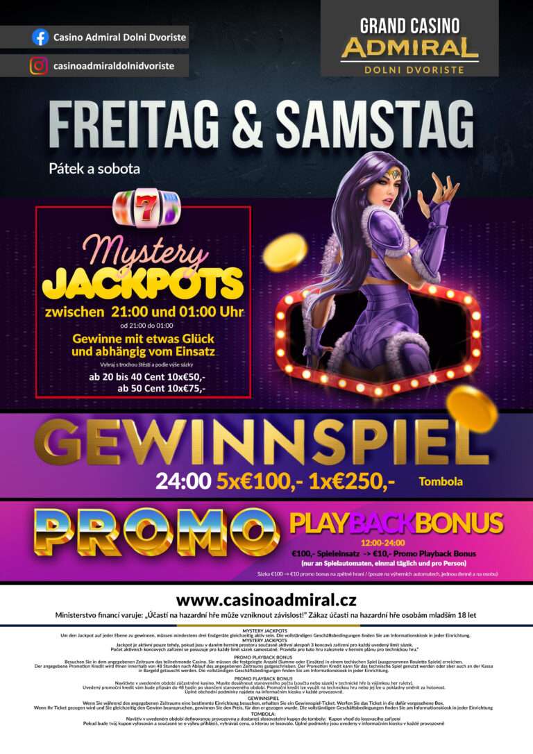 Ponořte se do starověkého Egypta a zažijte zábavu v neobyčejné atmosféře. Na základě populární hry „Of Ra“ je navrženo kasino ADMIRAL Le Grand – Dolní Dvořiště. Zde bylo vytvořeno velmi speciální kasino s velkou pozorností na detail. S více než 100 moderními hracími automaty nabízí LE GRAND Casino Dolní Dvořiště široký výběr nejnovějších her. Kromě toho vám nabízíme 8 stolů živé hry American Roulette, Blackjack, Ultimate Texas Holdem a Russian Poker. Casino ADMIRAL Le Grand – Dolní Dvořiště se nachází přímo na hraničním přechodu Freistadt. Linz je jen 50 km daleko, od Welsu pojedete 90 km.